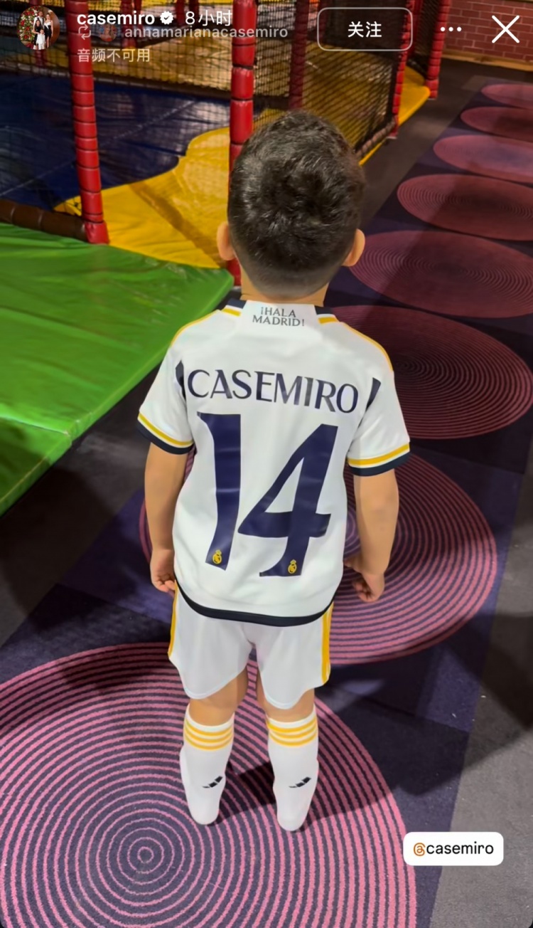 9月12日讯 今日,曼联中场卡塞米罗更新社媒,晒出儿子身穿皇马球衣的照片。